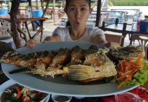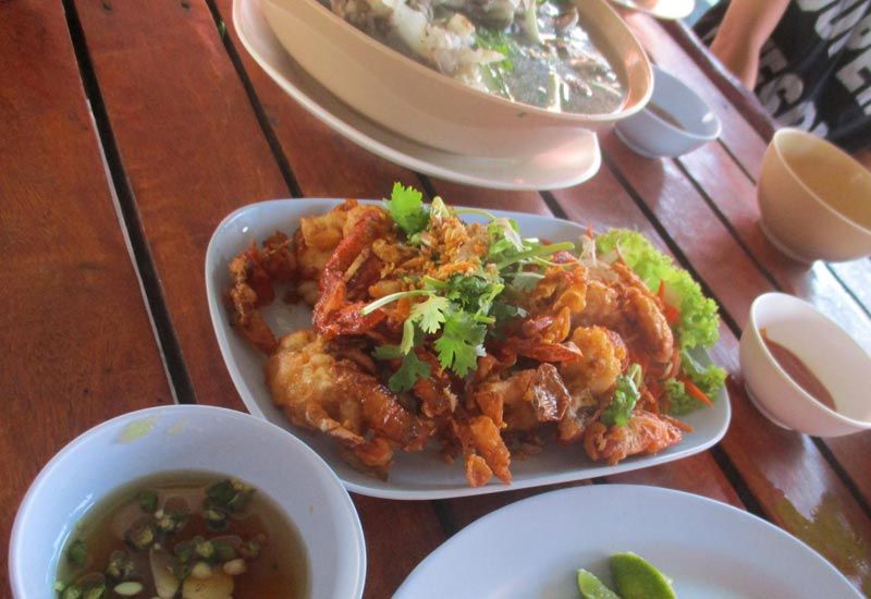 Theres three or four of these floating restaurants located within sight of each other, Black Crab, Laem Him and Kru Suwit. EAch each service the same dishes and are comparable on price. They keep their own live fish and shellfish in special contained areas which and can be viewed before purchase. The experience is truly Thai and the customers you will find to be mostly Thai also. Consequently prices are very reasonable and you can eat like a king for next to nothing. If you like fish or shellfish, your Angel does for sure, then you really need to make time to visit for a great meal and experience.